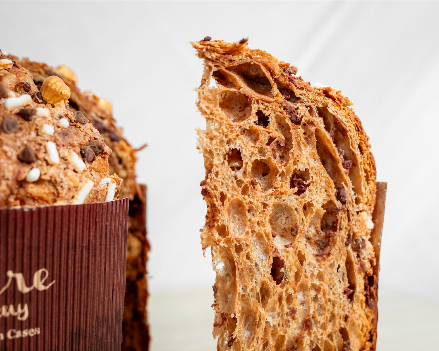 El rey de las masas fermentadas se caracteriza por un complejo proceso que prevé cuatro fermentaciones con un tiempo, temperatura y humedad controlados que aumentan considerablemente su suavidad. Todo ello se completa con dos masas, para una duración total de 65 horas.